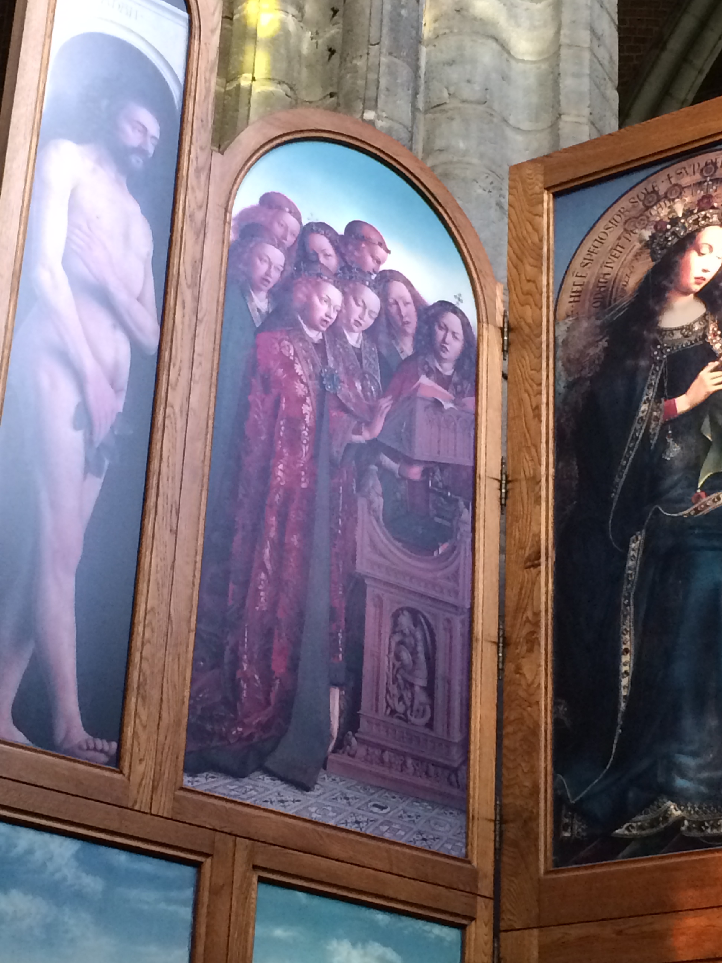 While in Ghent, it was obligatory to behold the stunning work of art located within St Bavo’s Cathedral, the van Eyck brothers’ Het Lam Gods aka The Adoration of the Mystic Lamb; one of the panels in particular will be familiar to you all:
