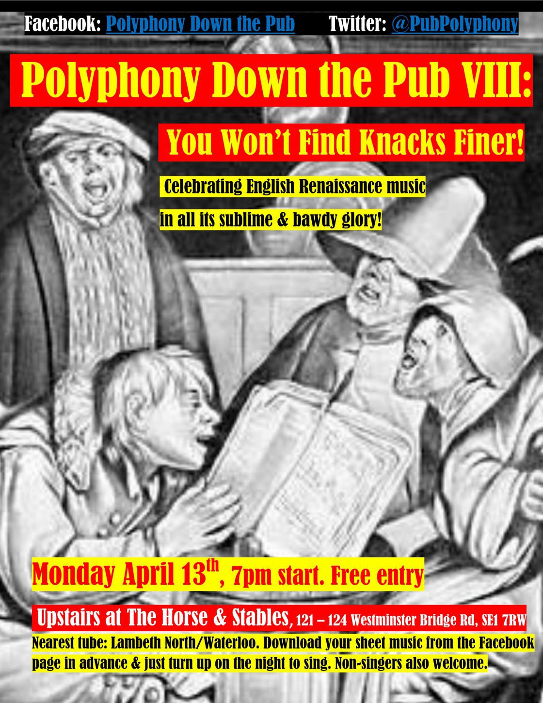 We finished off the year somewhat spectacularly. First up, we had The PDtP Christmas Special: Have Yourself a Merry Little Polyphony Down the Pub Christmas (again, just trips off the tongue), another 70-hander in which we enjoyed masterworks by Praetorius (Michael & Hieronymus) and an almost correct rendition of Bach’s Vom Himmel Hoch.