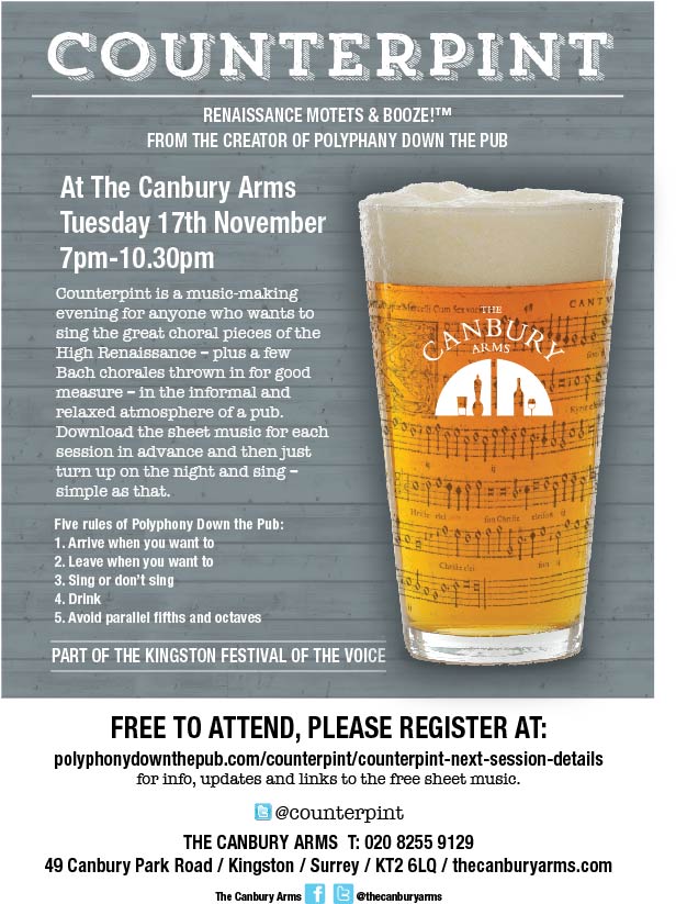 As part of the birthday celebrations and following on from the success of the session, we announced Counterpint, a spin-off night intended to appeal to all those unable to make PDtP on Monday, which would launch in: